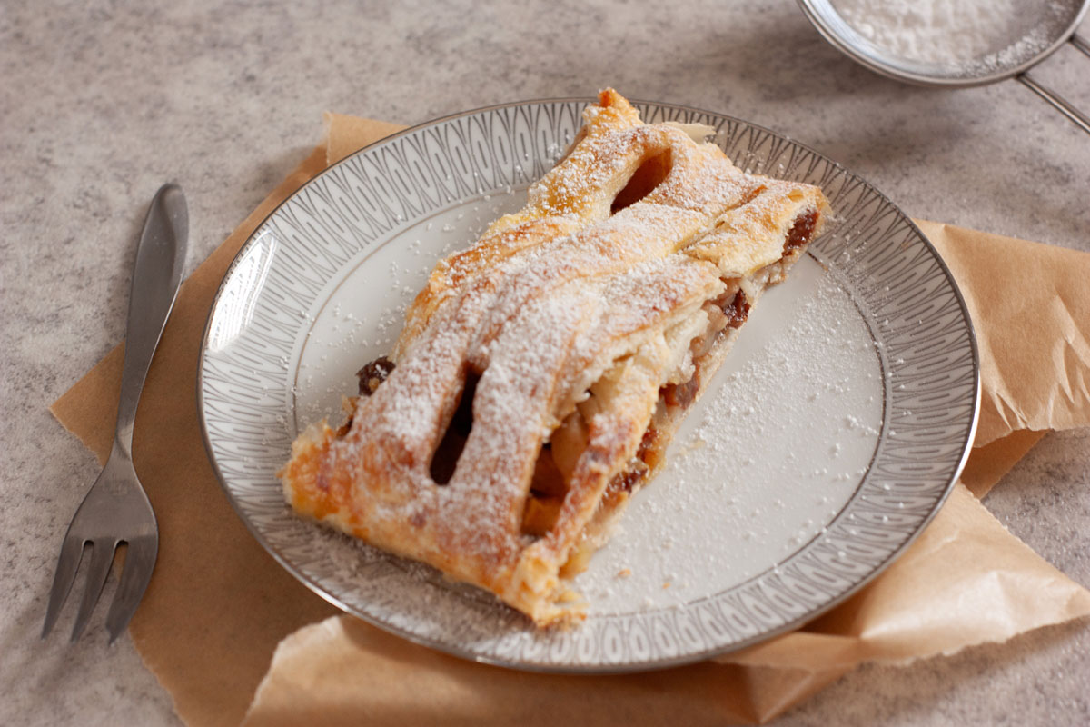 Apfelstrudel wordt traditioneel bereid met strudeldeeg. Voor deze versie gebruiken we kant en klaar bladerdeeg. En het fijne is, door gebruik te maken van kant en klaar bladerdeeg is deze apfelstrudel zo klaar! Ideaal als je last minute bezoek krijgt, of opeens zin hebt in iets lekkers voor bij de koffie. Met dit gebak van smeuïge, zoete appel met rozijnen omhuld door een knapperige korst van bladerdeeg maak je iedereen blij.